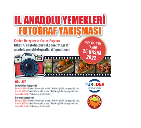 Anatolia Turizm Akademisi ile Turizm Eğitimi ve Eğiticileri Derneği’nin işbirliğinde düzenlenen Anadolu Yemekleri Fotoğraf Yarışması’nın ikincisine başvurular başladı.