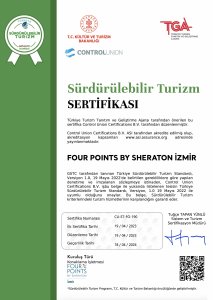 Sektördeki en güçlü portföyü sunan 30 markası ve 131 ülkede yer alan 7 bini aşkın tesisi ile hizmet veren Marriott otellerinden Four Points by Sheraton İzmir, TGA’dan Sürdürülebilir Turizm Sertifikası almaya hak kazandı.