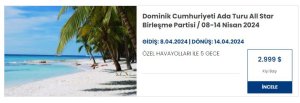 Survivor programını turizm etkinliğine  dönüştü. Acun Ilıcalı’nın sahip olduğu AF Seyahat’in, bedeli kişi başı 2 bin 999 dolardan Dominik turu düzenleyeceği açıklandı.